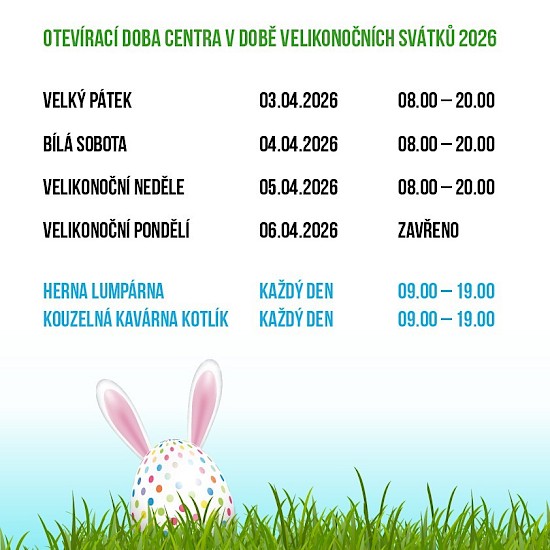 Velikonoční otevírací doba centra.
